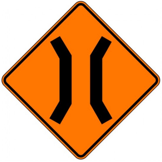 WD-A-33-L Road Narrows Lane Ends (Left)
